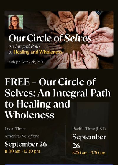 This is a series of 4 sessions that will meet every other Friday (September 26, Oct 10, Oct 24 and Nov 7th at 11am ET.) hosted by Integral Life .We’re gonna explore our circle of selves and inner healing, parts work, shadows, growth, awakening and how that allows us to show up in our world to share our unique gifts, all through the lens of honoring the wisdom of our lived experiences. We will be connecting these themes to the wisdom of an Integral path and the arcs of spiritual development threaded in my memoir. This book club is open to everyone, from seasoned Integral practitioners to those brand new to Integral. Come as you are, bring your parts and let’s share real experiences and explore real healing, I hope to see you there! Sign-up here --> Our Circle of Selves Book Club